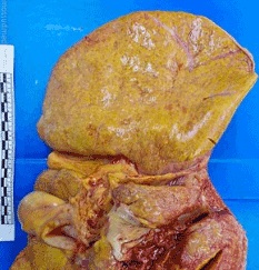 Esto se llama esteatosis hepática o degeneración grasa de las células del hígado. Desafortunadamente, todos los humanos modernos tienen este problema de diverso grado.